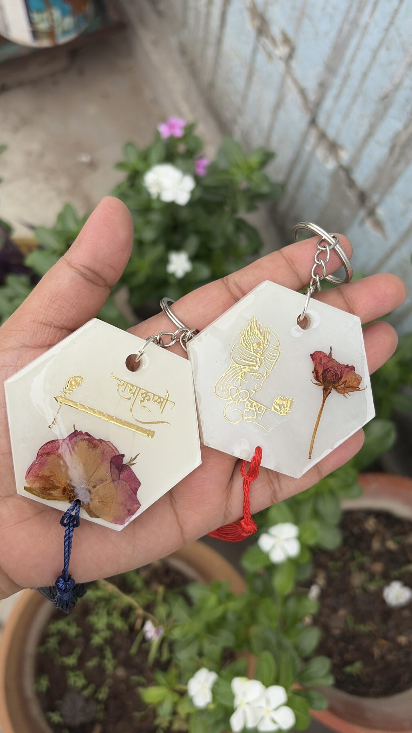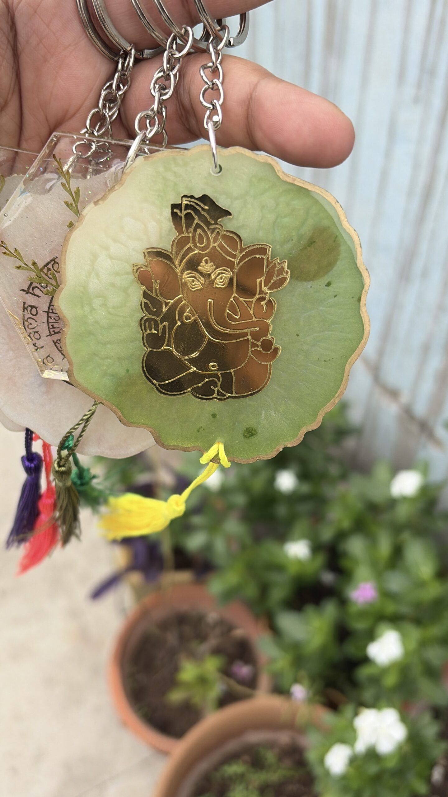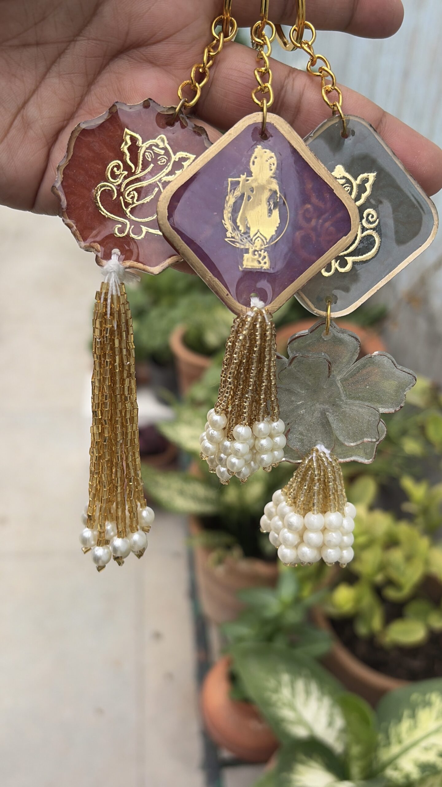 – God motifs (Ganesha, Krishna, Shiv Shankar, etc.) - Finish: Smooth resin with decorative tassels